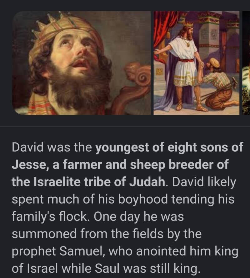 Hananel Dayan, at 40 years old, is a patrilineal descendant and is considered by Rabbis in Israel to be the next anointed Messiah. He is discussed in relation to a messianic figure depicted in imagery published by Israeli media in 2017. The role this figure is prophesied to perform includes officiating the Red Heifer Sacrifice and rebuilding the Third Temple, among other significant responsibilities.