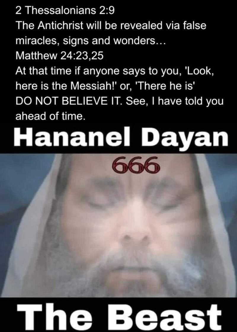 Hananel Dayan is the modern day, 90th generation, patralineal descendant of King David, with the genealogical records in hand to prove it. The exact qualifications that Judaism mandates to prove who is the Moshiach/Messiah.....or in this case THE Antichrist.
