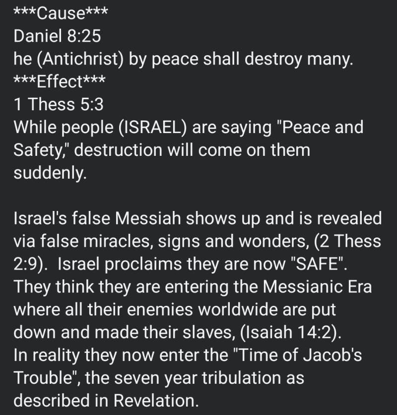 Israel rejected Christ....so God will give them Antichrist (definition: 'in the place of') just as Jesus warned about in John 5:43--"I have come in my Father’s name, and you do not accept me; but if someone else comes in his own name, you will accept him"